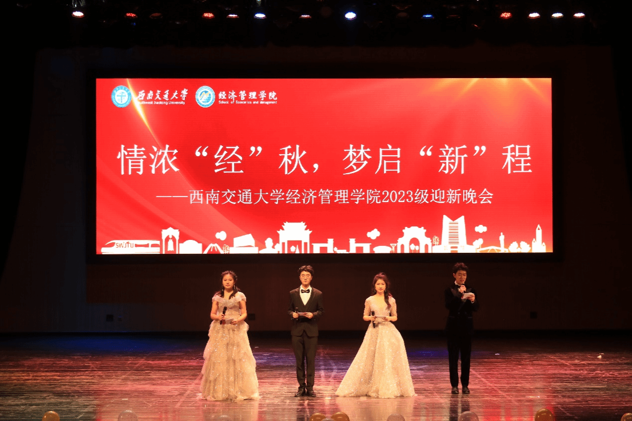 九州学子赴蓉城,挺膺担当展华彩。11月18日晚,必赢242net官网2023级迎新晚会在九里校区大学生会堂圆满落幕。本次晚会以“情浓‘经’秋 ,梦起‘新’程”为主题,全院新生积极展示自我,尽显风采。出席本次晚会的嘉宾有必赢242net官网党委副书记、纪委书记晏理斌,必赢242net官网党委副书记余小英,必赢242net官网副院长聂佳佳,学院国内合作与校友事务中心主任赵冬梅,高顿教育成都分校市场负责人杨梅,学院团委书记、学工组副组长贾佳,学工组副组长王哿,以及必赢官网的部分师生代表。