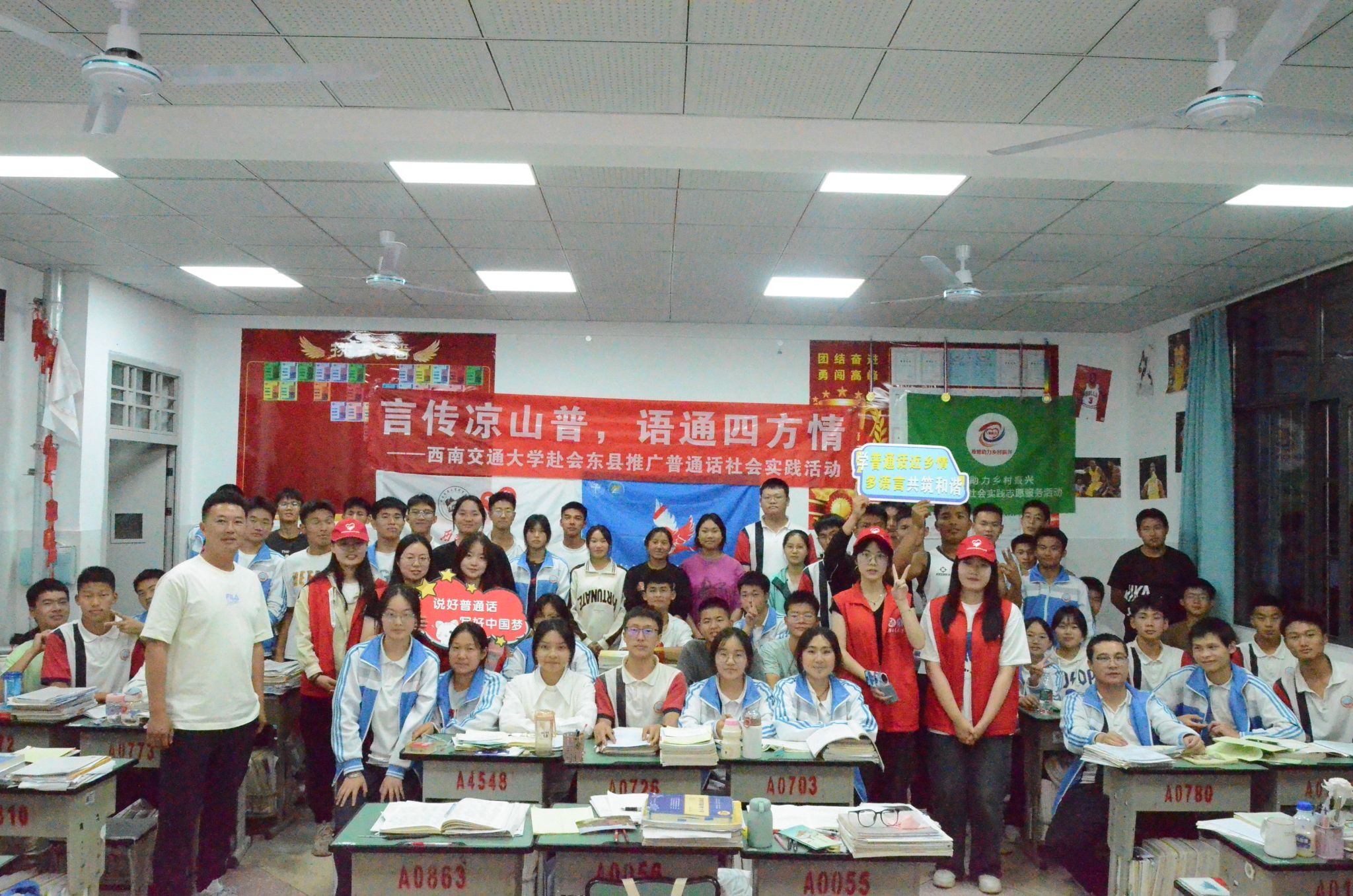 当夜幕降临,热情不减的队员们踏入会东中学高三七班的教室,开展普通话线下培训,并为高考加油助力。