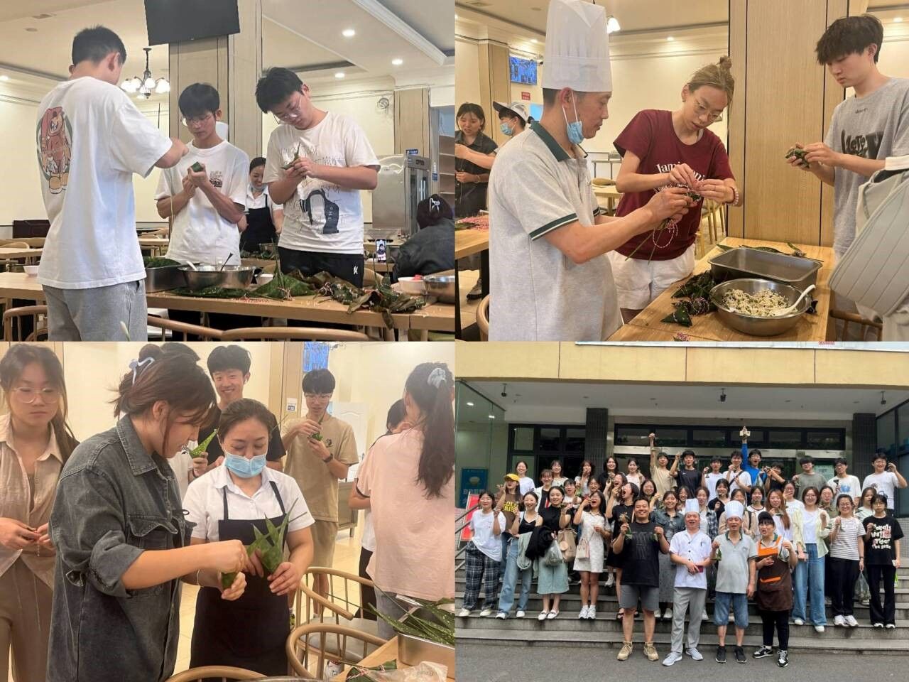 端午粽子不仅仅是一种美食,更是中华民族千年文化的载体。在学院组织的包粽子活动中,师生们齐聚一堂,共同体验传统手工艺的魅力。活动伊始,师傅们现场传授包粽子的技巧,从粽叶的折叠到糯米的填充,再到粽子的封口与捆绑,每一步学生们都认真学习。虽然学生们的首次尝试手法稍显生涩,但他们热情洋溢,积极参与。整个活动不仅让同学们感受到了传统节日的温馨氛围,也加深了对中华文化传统的认识和了解。