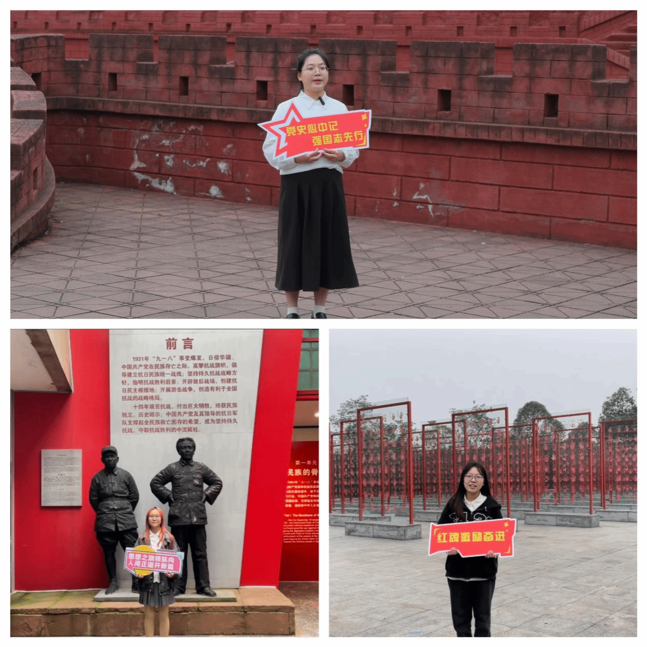 “赤色印记,永恒篇章”。支部成员面颊上贴着红旗贴纸,怀揣着对革命先辈的敬仰之情,共同踏上了前往建川博物馆的征程。途中,《少年》的旋律响起,大家以坚定的歌声表达新时代青年的理想与追求,展现出青春活力、奋发向上的精神面貌。当《没有中国共产党就没有新中国》奏响,大家挥舞手中的小红旗,齐声高歌,表达了对国家繁荣昌盛的自豪和对党领导核心地位的一致认同与维护。