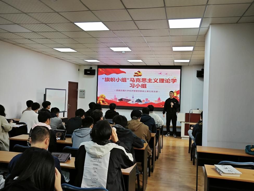 走过百年光辉历程的中国共产党,初心如磐、使命在肩,在新征程上踔厉奋发、勇毅前进,信心百倍书写着新时代中国发展的伟大历程。为全面深入学习马克思主义理论,加强党性修养,提高理论素养,担负起实现中华民族伟大复兴梦的重任,2023年11月28日晚7点,必赢242net官网硕士2023级第五党支部在信息楼0318教室开展“‘旗帜小组’马克思主义理论学习”主题党建活动。必赢242net官网2023级工业工程与管理专业的全体同学参加,支部书记张恩弋主持。