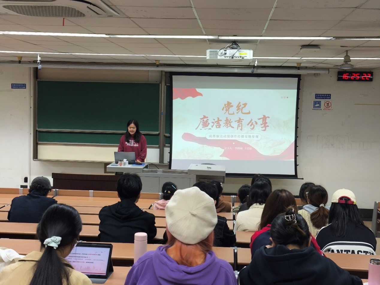 第三部分,支部成员分享了自己对于系列党纪教育学习的感悟。余思蕊同学表示,她深刻体会到了在大学生发展道路上会遇到许多诱惑,我们必须擦亮双眼,严守纪律红线。同时,何佳同学在参观完成都廉洁动漫创作基地后表示,廉洁不仅是一种道德要求,更是一种精神追求,作为大学生党员我们要始终保持公正、廉洁的态度和行为,为社会的和谐稳定和繁荣发展贡献自己的力量。